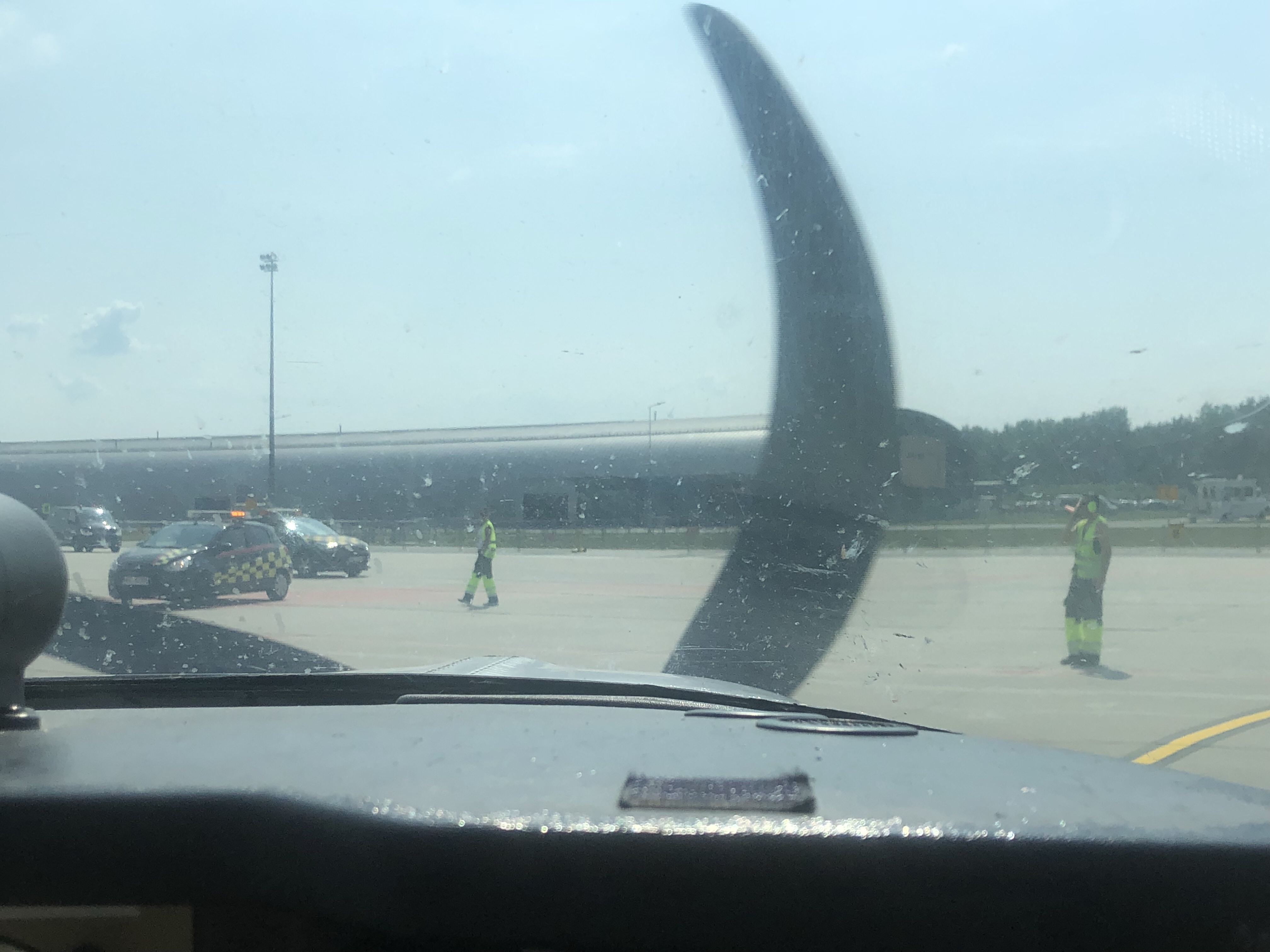 Quelques instant plus tard, deux policiers pensant que nous venions de Russie (l’information ayant mal été communiquée par le Handling…) et qui attendaient en zone non-Schengen, en ont profité pour venir nous saluer sans même contrôler nos passeports.
