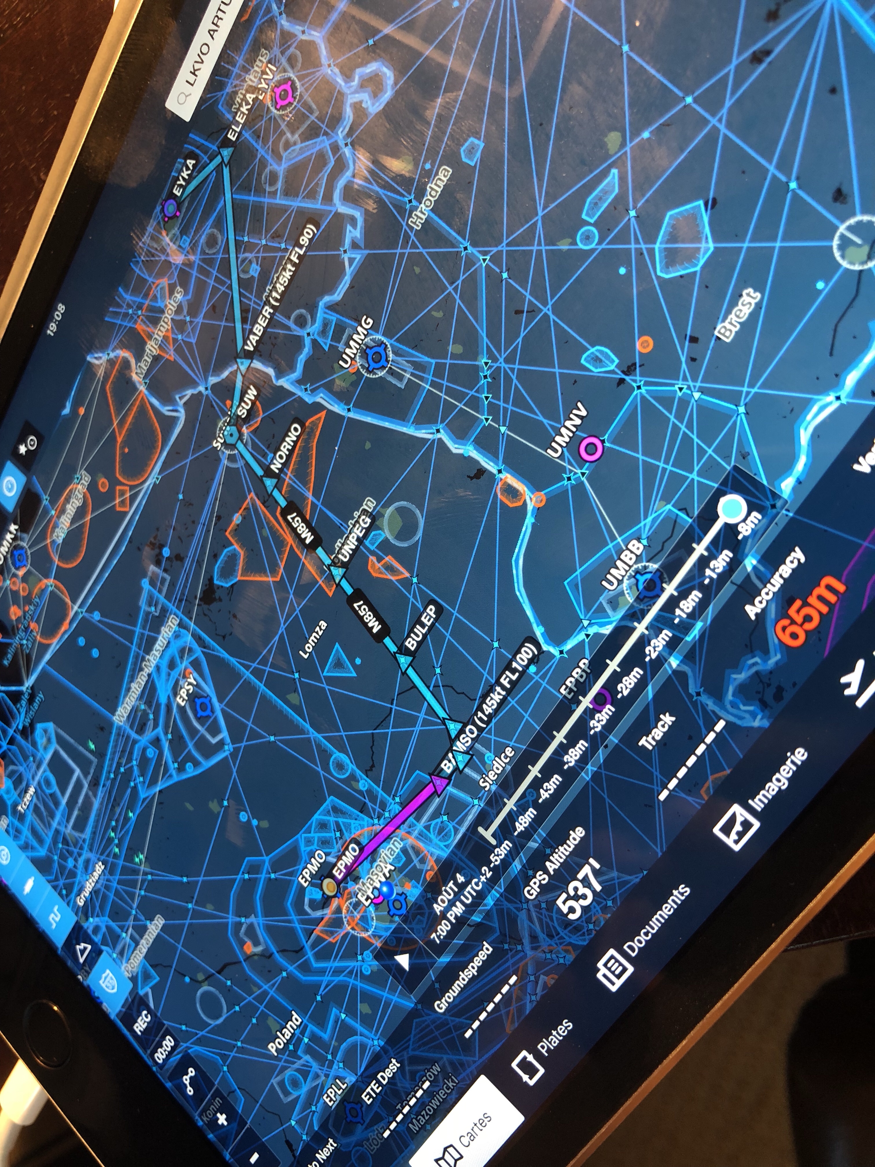 La route qu’il est possible de déposer vers Kaunas nous fait faire un gros détour à cause de zone TSA “temporary segregated area”