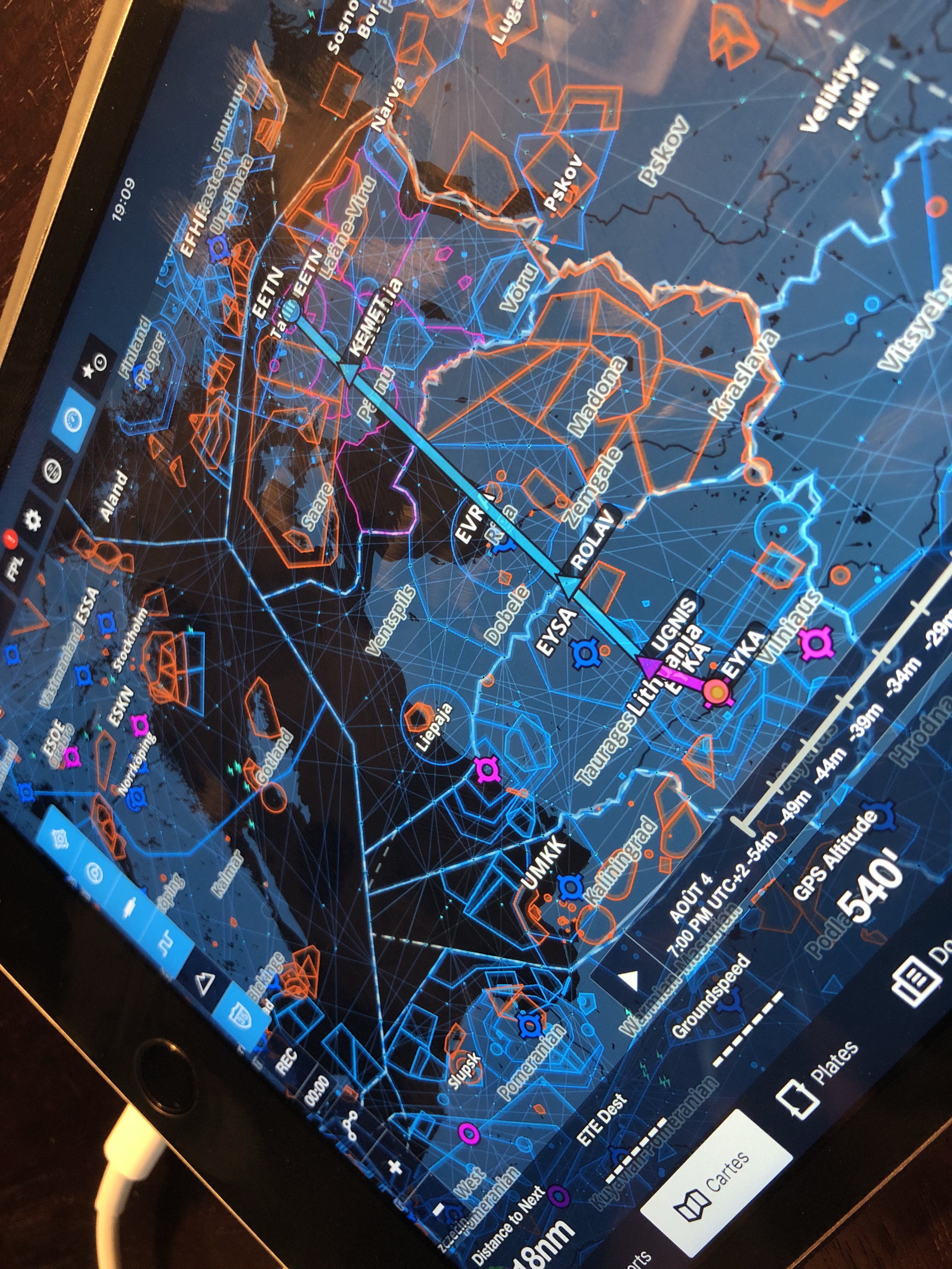 Nous passerons les frontières au points IFR VABER pour la Lituanie et ROLAV pour l’Estonie .