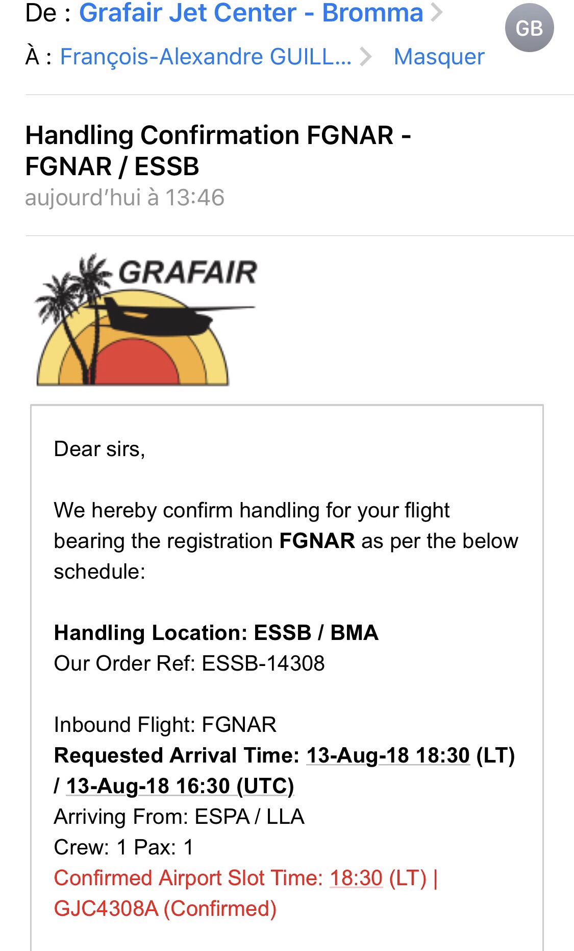 On ne perd pas de temps , décollage prévu à 15h30 locale , on a demandé un créneau à 18h30 à bromma .