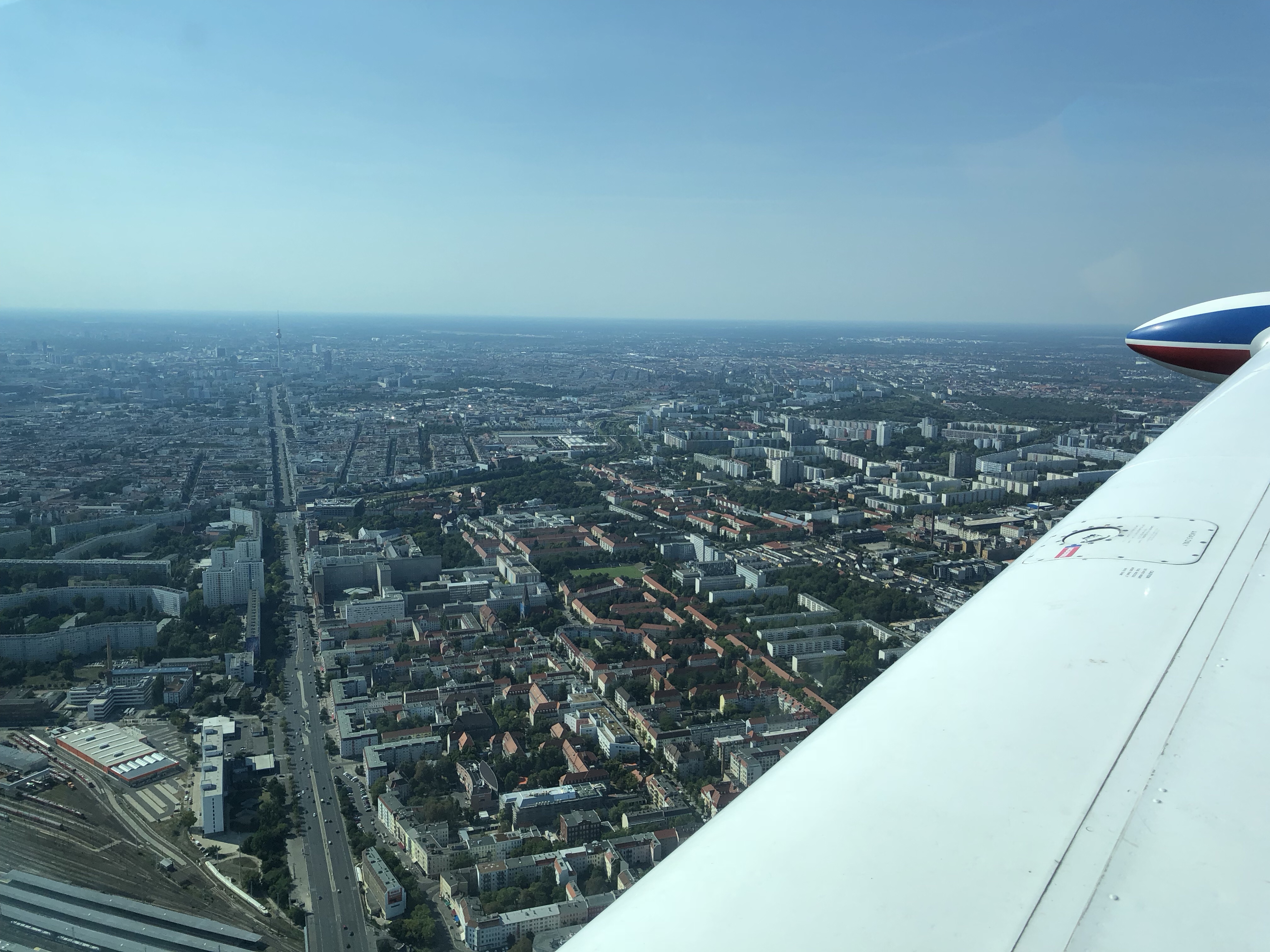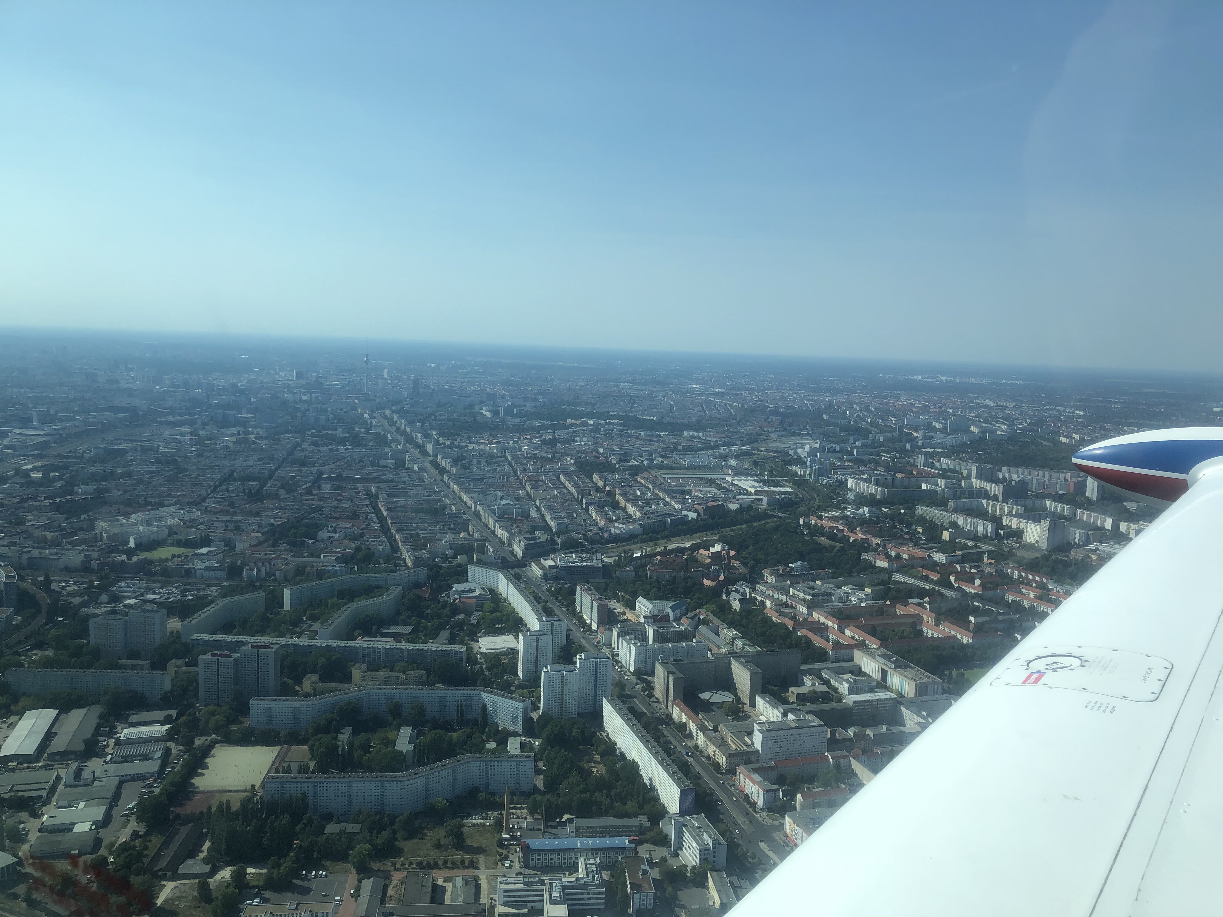 Nous sommes maintenant plein ouest , Berlin est face à nous et nous voyons la tour de la télévision “FERNSEHTURM” .