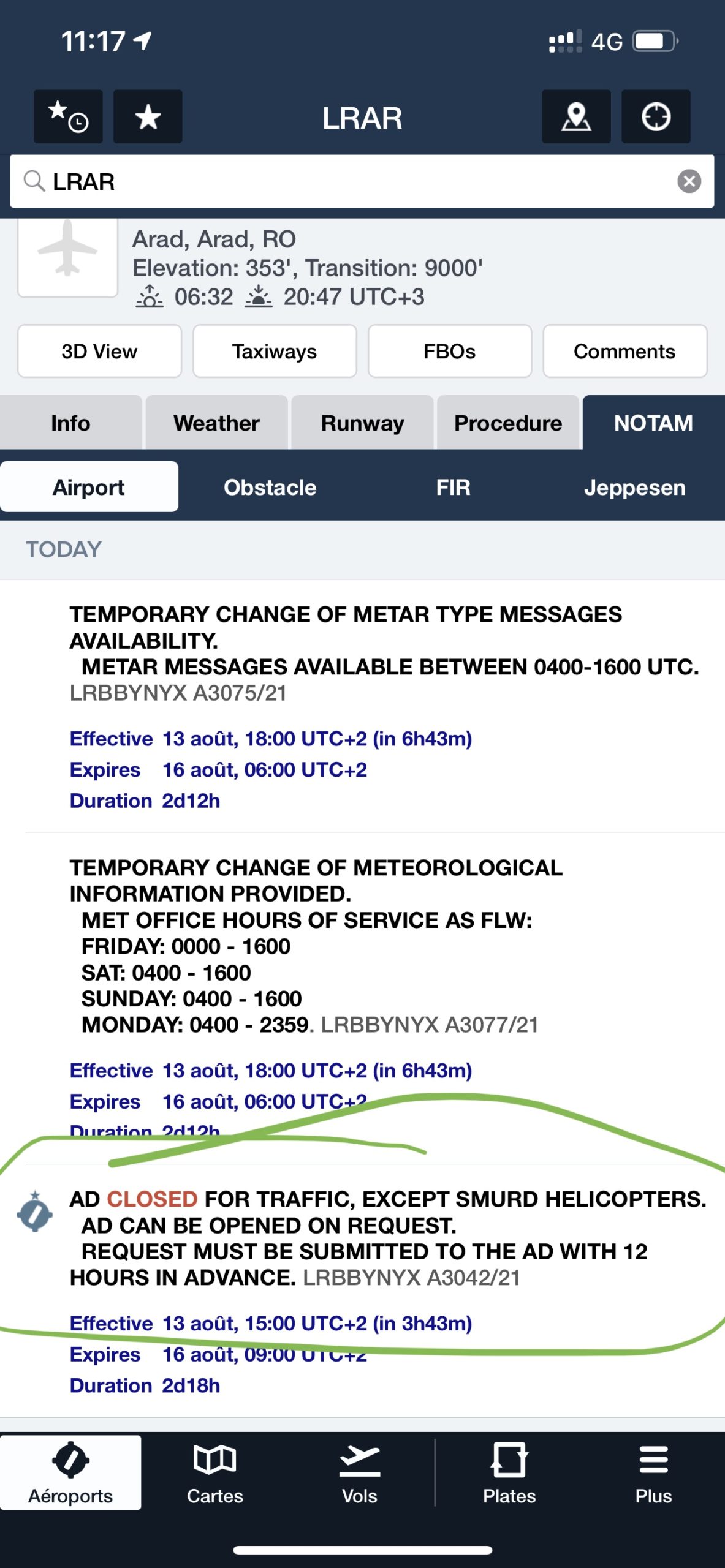 Le terrain douanier roumain sera fermé par notam à notre prévisible d’arrivée !