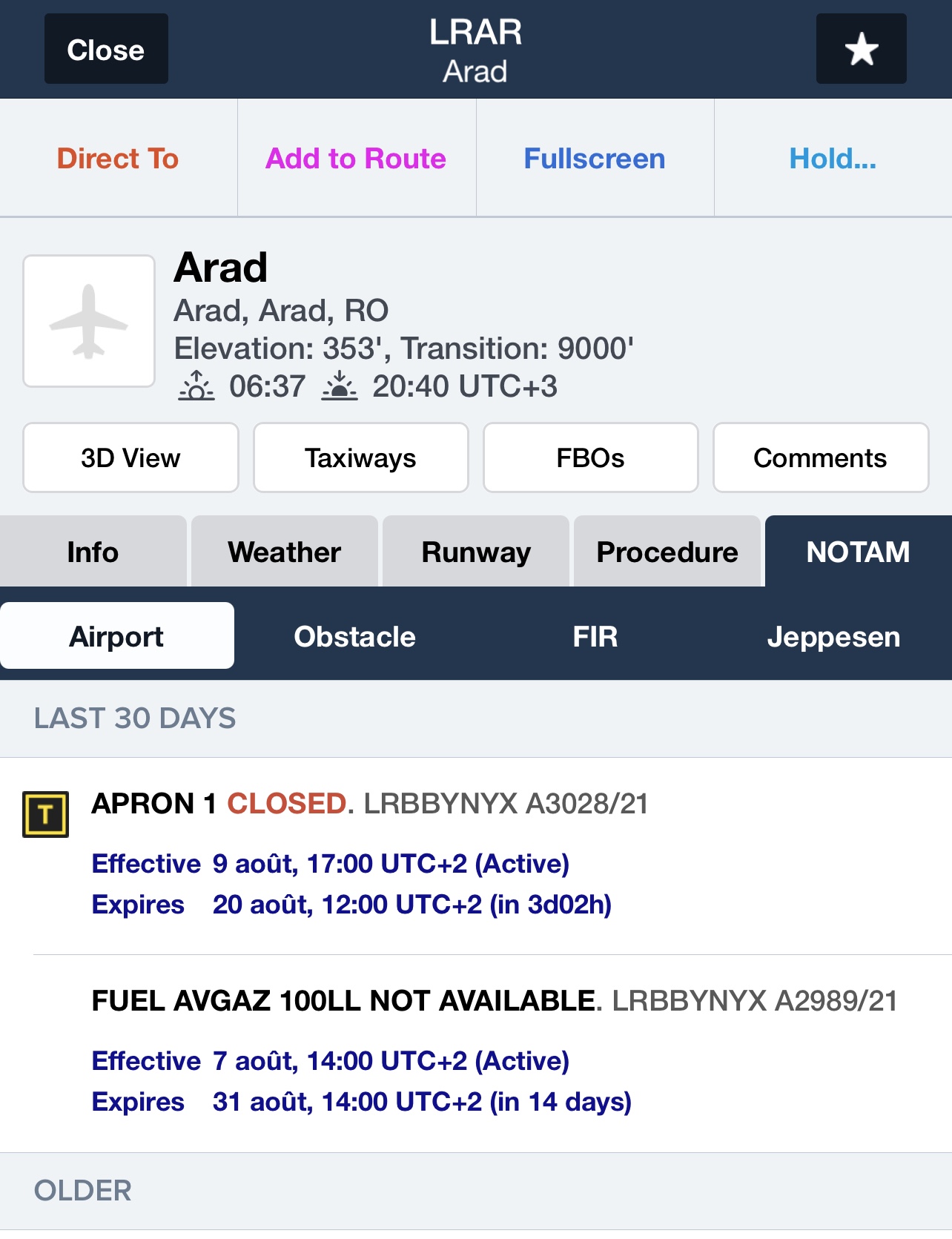 Donc rebellote , AIP, terrains, notam , essence , covid …