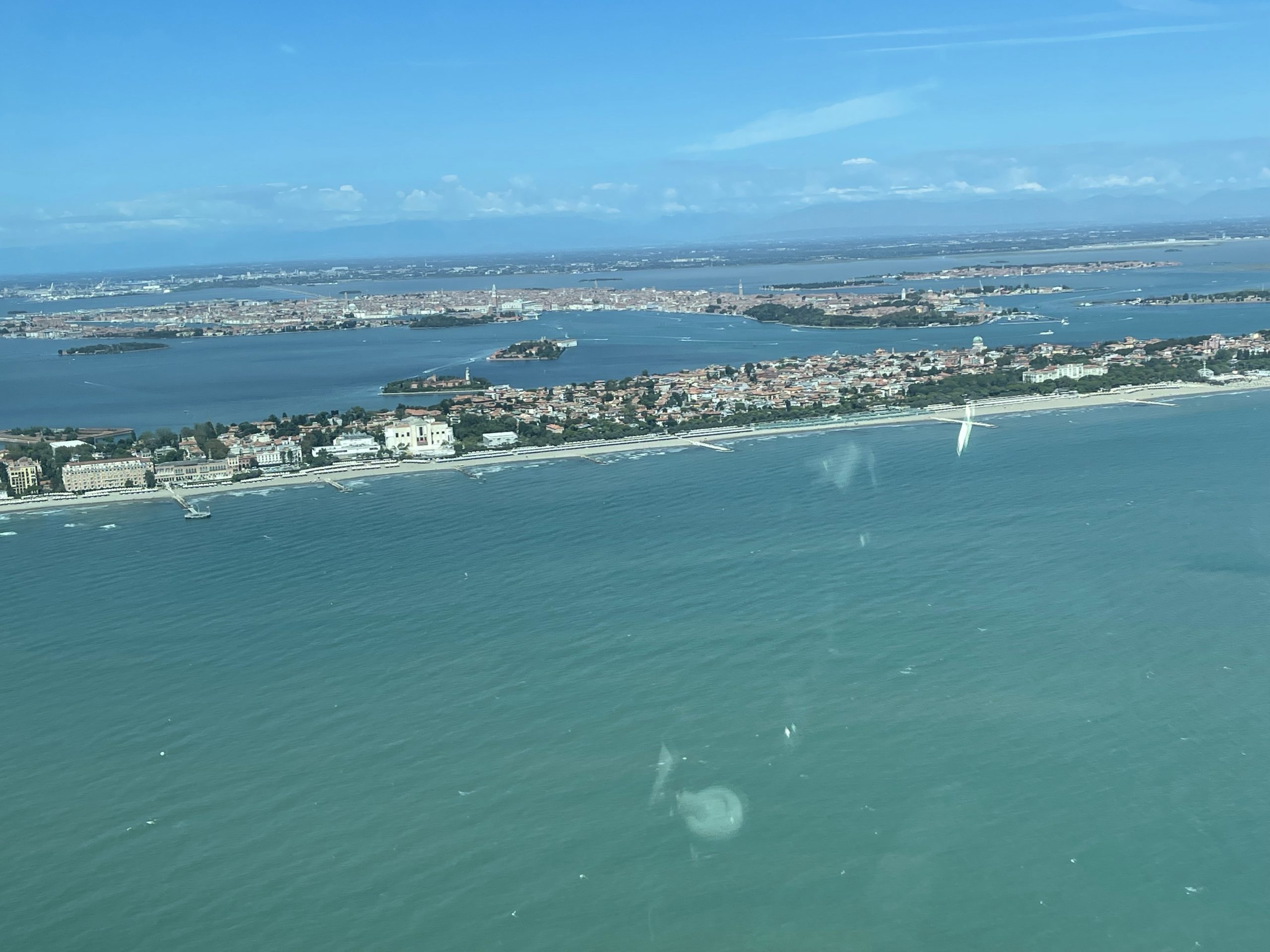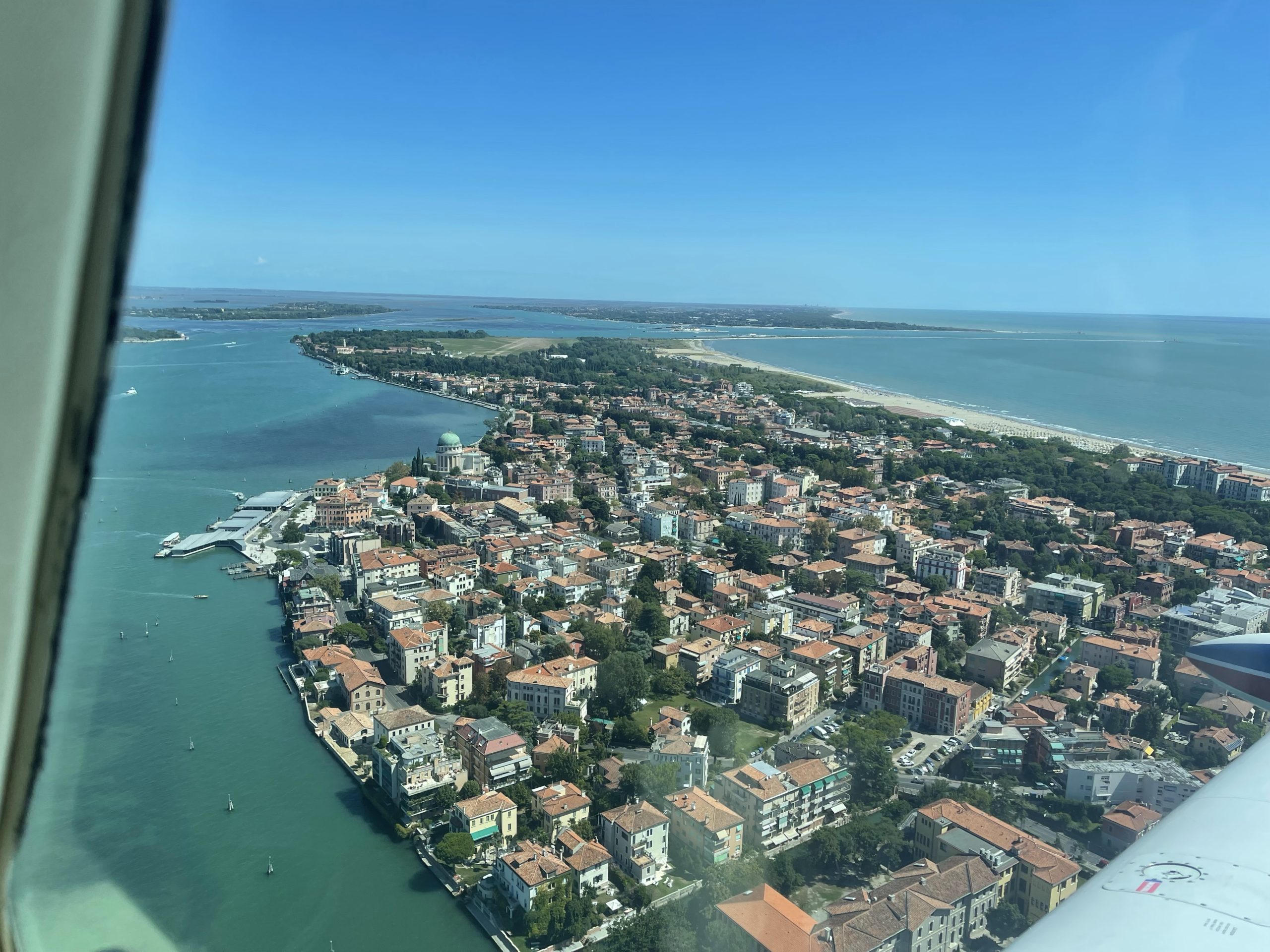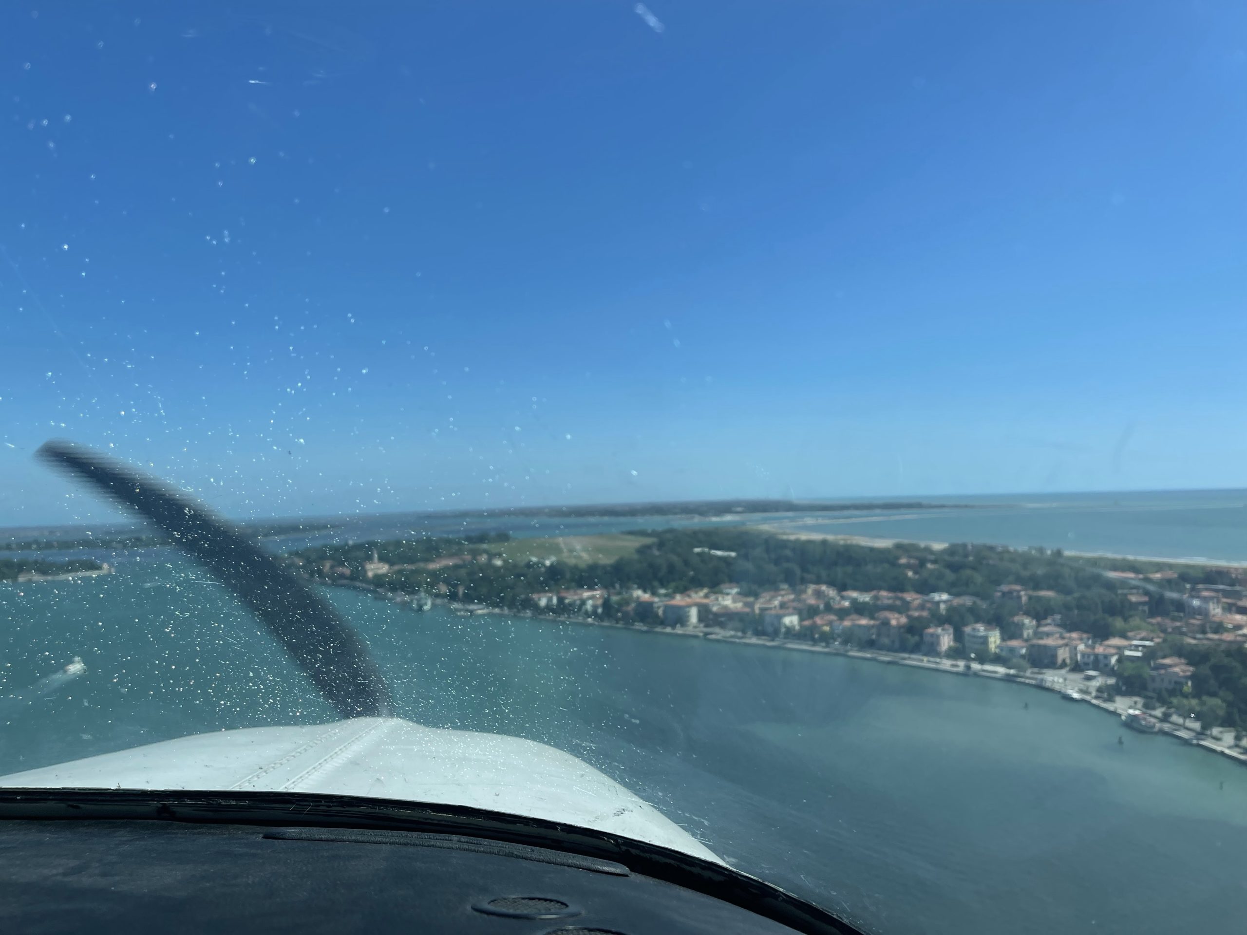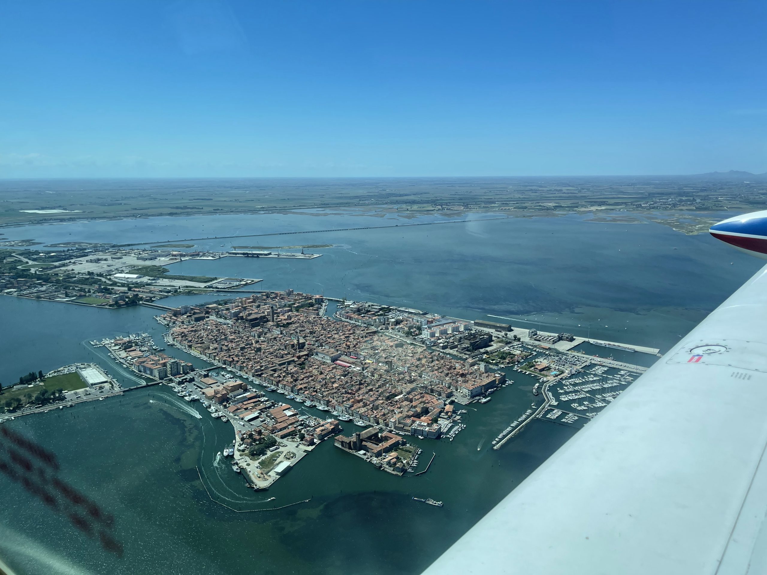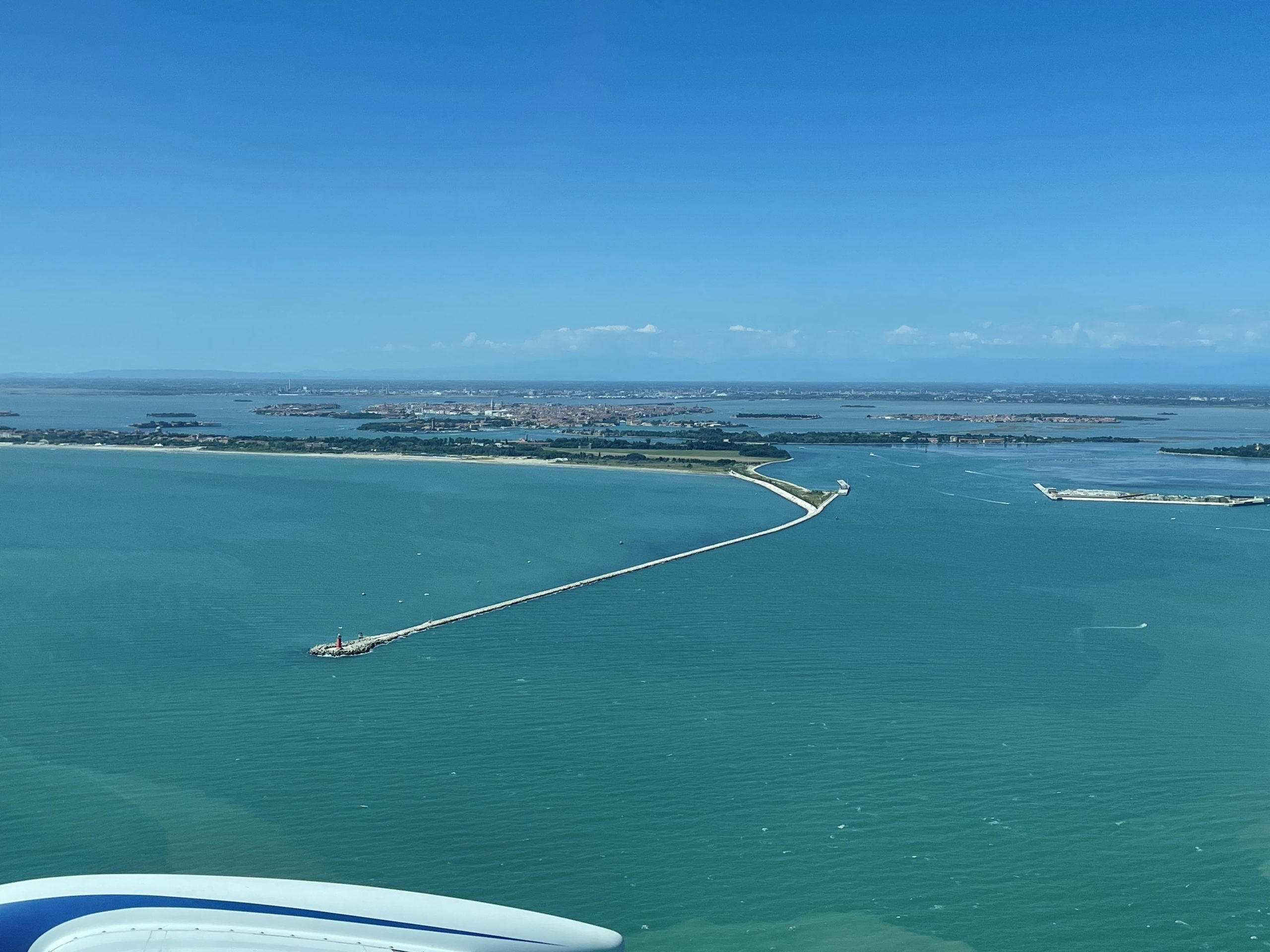 L’AFIS du Lido nous demande de nous reporter PORTO DI MALAMOCO PZS3., nous nous exécutons pour notre plus grand plaisir , à 1300ft au dessus de l’eau !