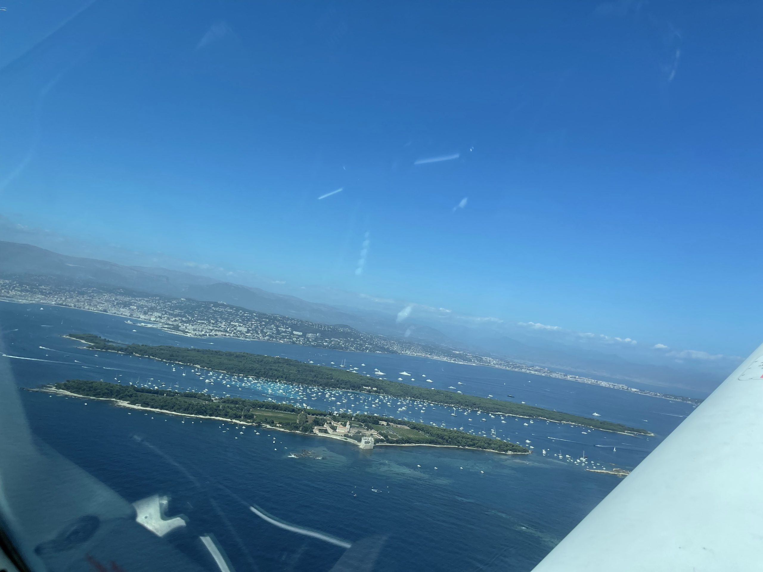 Il nous prescrit 2 tours d’attente par la gauche légèrement à l’ouest des îles de Lerins et à 1000ft ! Une vraie punition pour nous autres parisiens !
