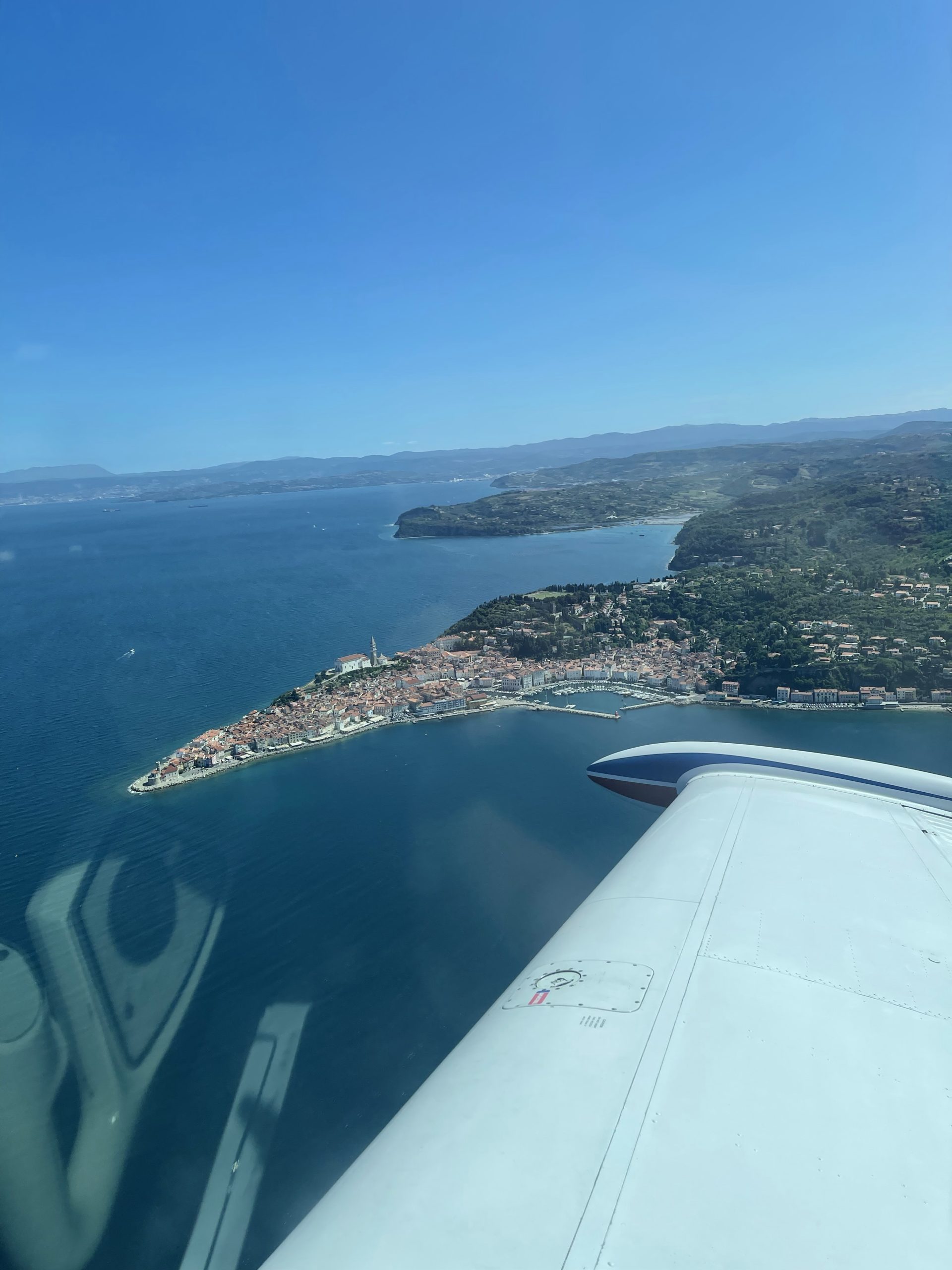 Alignement , décollage , la température est douce , on atteint notre altitude de croisière en quelques secondes , passons le port de piran – magnifique – et sommes déjà transférés à PADOVA information .