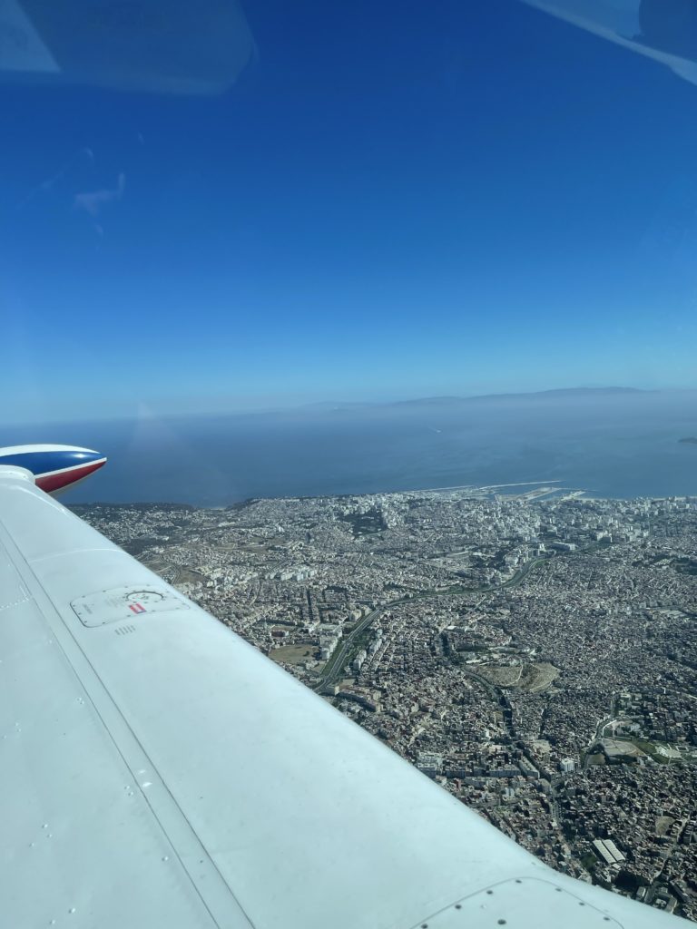Le ciel est d’une rare tranquillité. Peu d’avion sur la fréquence, l’avion est sur des rails , ne bouge pas … du tout on profite du paysage méditerranéen.