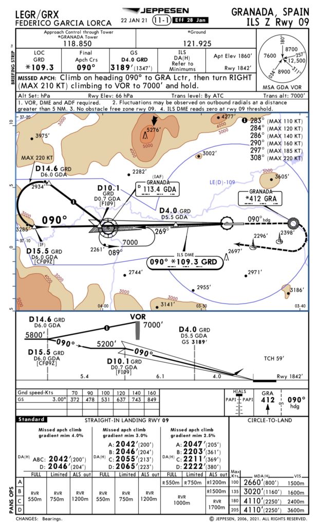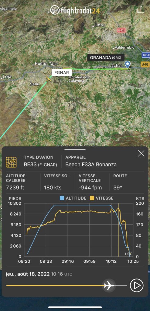 Le contrôle espagnol nous autorise jusqu’à GDA “clearance limit” et nous indique que la piste 09 est en service a Grenade.